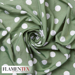 Soft fabric with elastane. 2.00 cm polka dot print.