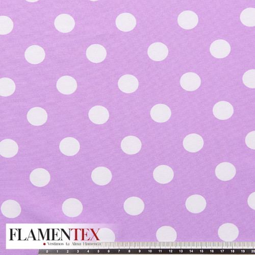 Soft fabric with elastane. 2.00 cm polka dot print.