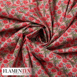 • Tejido de popelín de algodón suave estampado con florecitas.