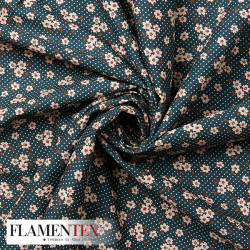 • Tejido de popelín de algodón suave estampado con florecitas.