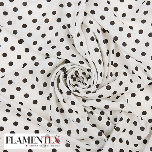 Viscosa. Tejido fino con mucha caida estampado lunares de 0,90 cms.