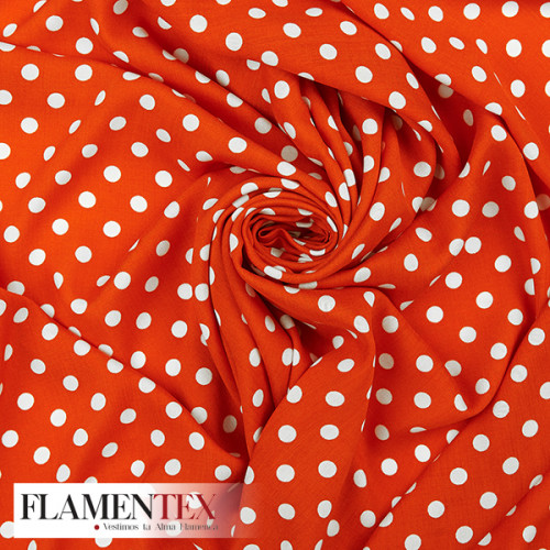 Viscosa. Tejido fino con mucha caida estampado lunares de 0,90 cms.