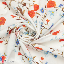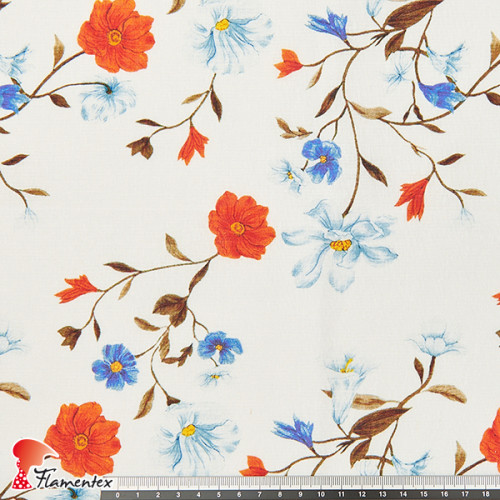 Tejido de algodón/ramie fresquito e ideal para el verano. Efecto hilo. Estampado de flores.