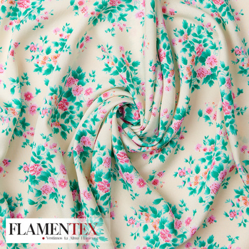 Viscosa. Tejido fino con mucha caída. Estampado de flores pequeñas.