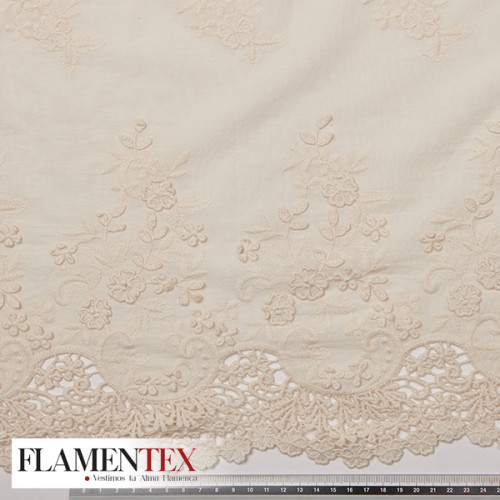 Tejido de bordado de algodón acabado con puntilla en los dos extremos.