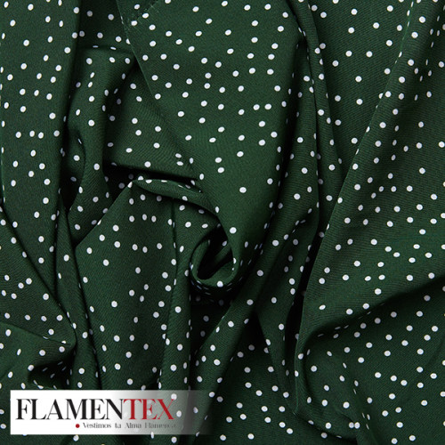 Tejido suave con caída y estampado de lunares pequeños desordenados de 0,30 cm.