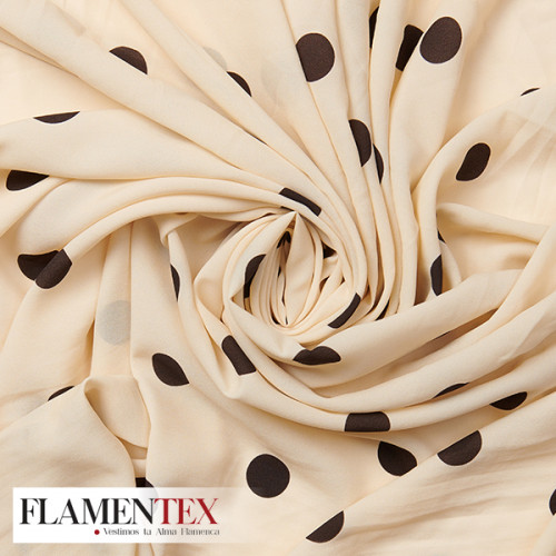 Tejido tipo georgette. Estampado de lunares de 2,00 cm.