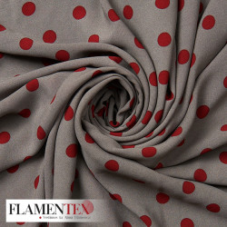 Tejido tipo georgette un poco más tupido y algo elástico. Estampado de lunares de 1,50 cm.
