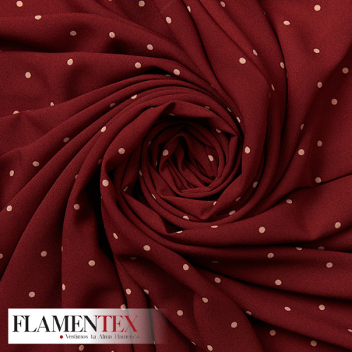 Tejido tipo georgette un poco más tupido y algo elástico. Estampado de lunares 0,50 cm.