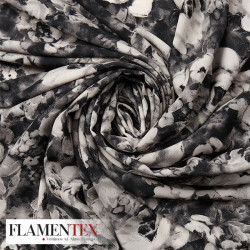 Tejido tipo georgette un poco más tupido y algo elástico, estampado rosas.