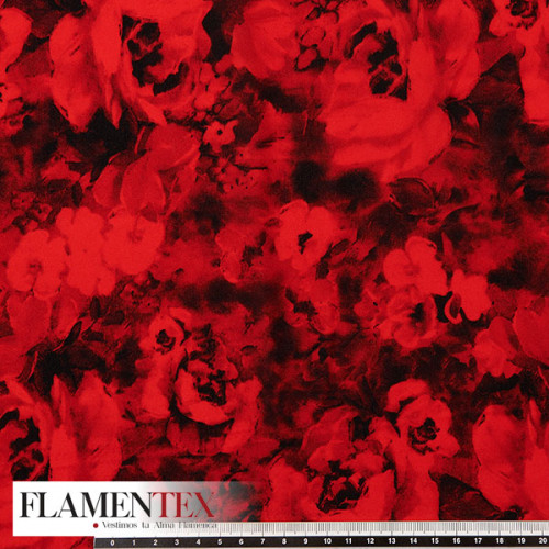 Tejido tipo georgette un poco más tupido y algo elástico, estampado rosas.