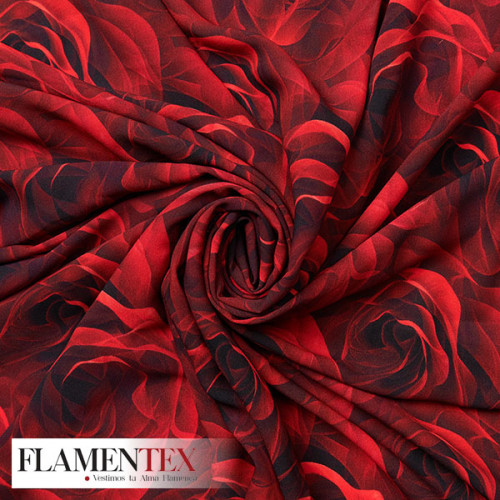 Tejido finito estampado con rosas.