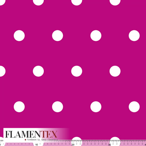 Tejido de apariencia de lino, con algo de elasticidad. Estampado de lunares de 3,00 cms.