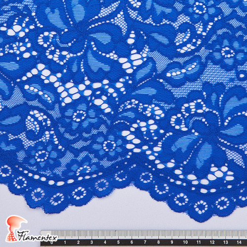 Tejido de blonda. Acabado en puntilla con ondas en los dos lados.