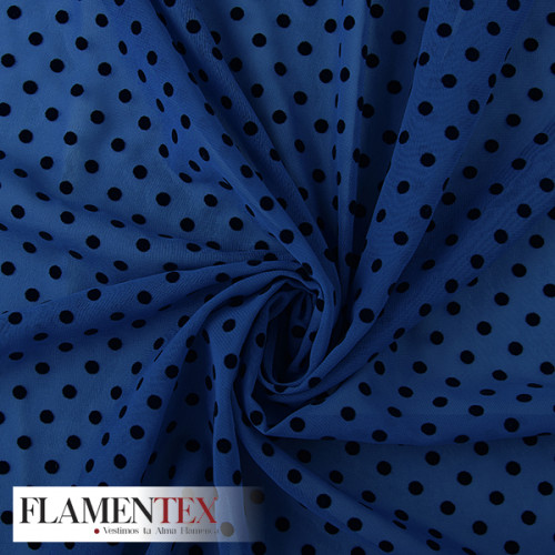 Tela de gasa fina con lunares flocados de 0,60 cms.
