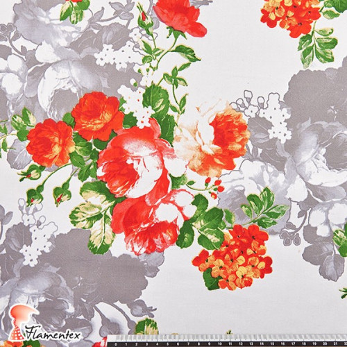 Tela satinada elástica para trajes de flamenca muy entallados. Estampado floral.